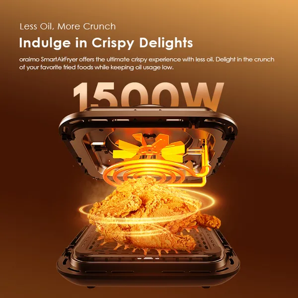 The oraimo SmartAirFryer offers the ultimate crispy experience with less oil. Delight in the crunch of your favorite fried foods while keeping oil usage low.
