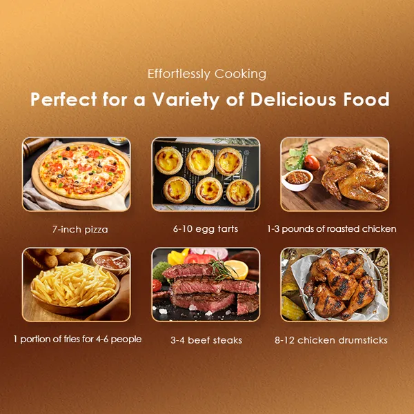 Whether you’re in the mood for crispy fries or a succulent roast, our intuitive temperature and timer controls let you tailor your cooking to your exact preferences, ensuring mouthwatering results every time.
