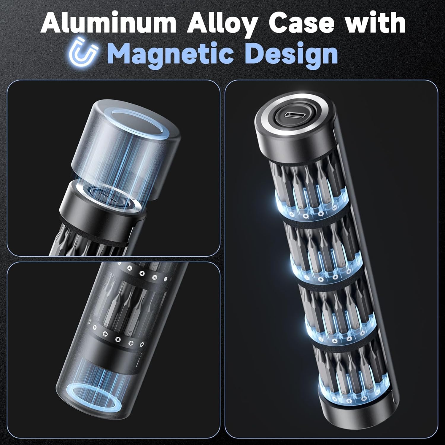 Each bit is magnetic, ensuring screws stay firmly in place and reducing the risk of drops or loss. The kit is CE, FCC, and RoHS certified for quality and safety. With its compact size (220 × 180 × 60mm) and multifunctional design, this tool is ideal for anyone who needs a dependable, portable screwdriver set.