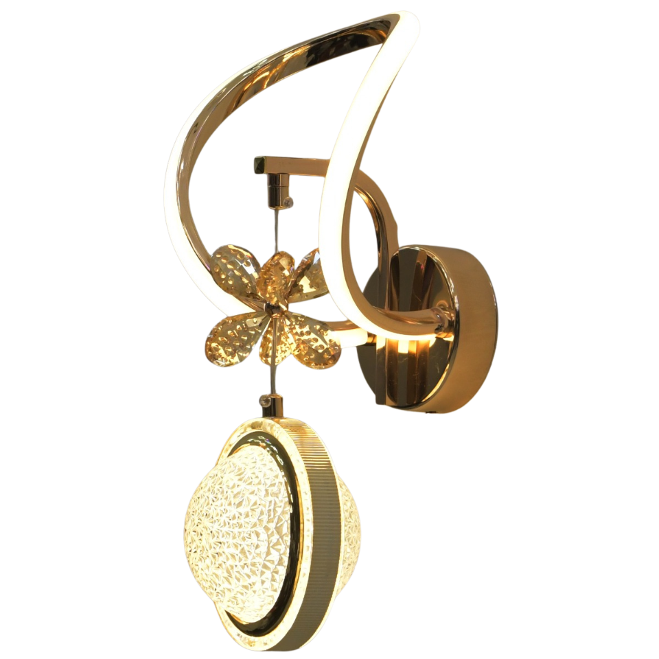 Its unique floral-inspired design radiates charm, while the soft curves of the LED arms provide a graceful glow that enhances the warmth of your interiors. The hanging crystal globe at the base diffuses light evenly, producing a sparkling effect that instantly elevates your décor. Whether mounted in your living room, hallway, bedroom, or hotel suite, this wall light delivers a balanced mix of ambient and accent lighting.